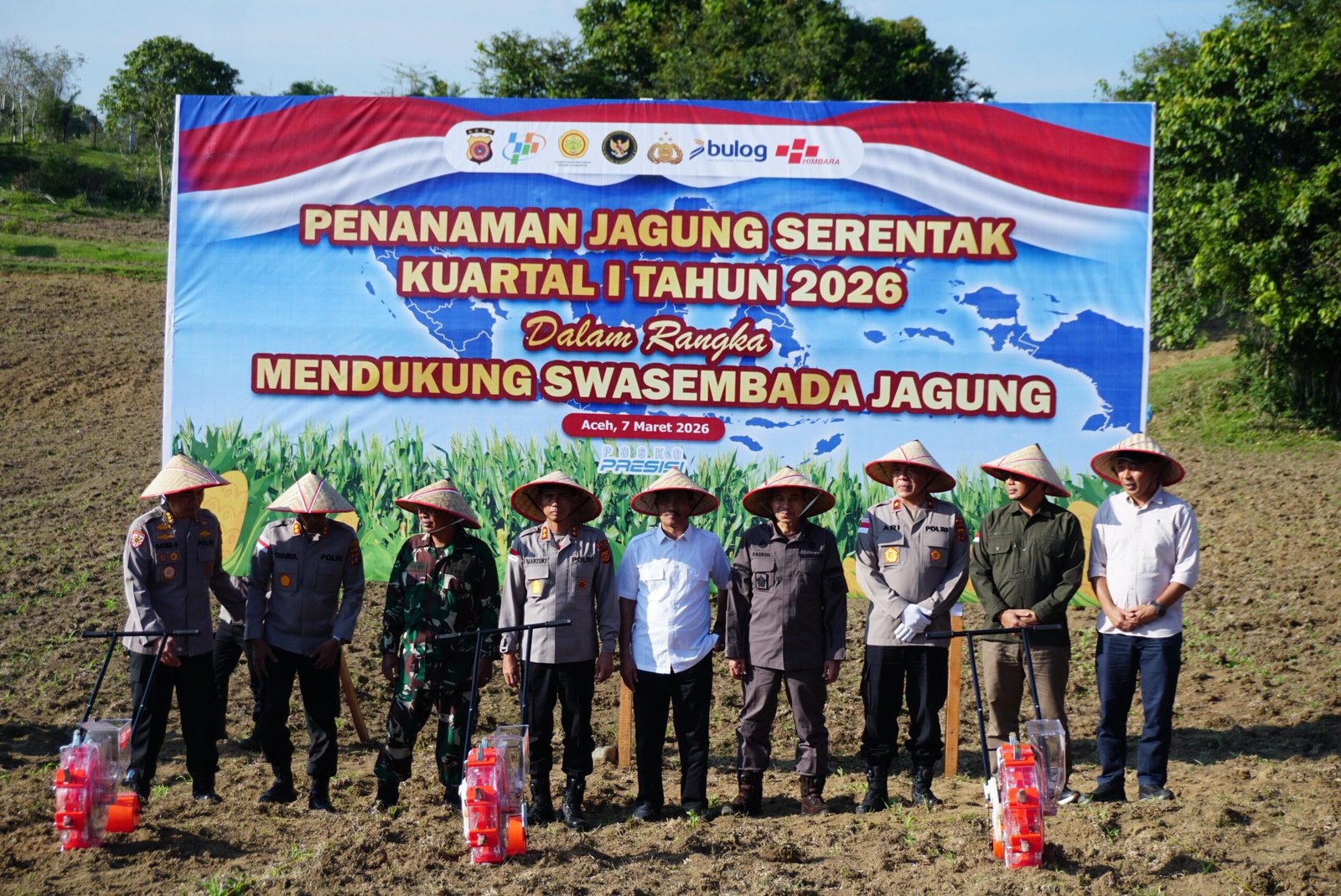 Penanaman jagung di Aceh Besar ini dilakukan secara serentak dan terkoneksi dengan kegiatan utama yang dipimpin langsung oleh Kapolri dari Kabupaten Ogan Ilir,
