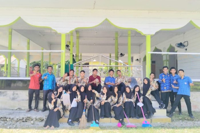 OSIS SMAN 1 Simeulue Barat sedang melakukan Baksos dengan bergotong royong membersihkan masjid jelang bulan suci Ramadhan 1447 H.