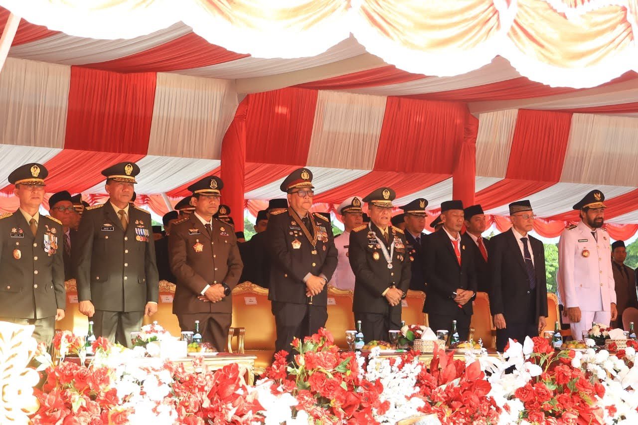Banda Aceh — medialatahzan.id.Kapolda Aceh Irjen Pol Dr. Achmad Kartiko mengikuti upacara peringatan hari ulang tahun (HUT) ke-80 Kemerdekaan Republik Indonesia yang digelar di Lapangan Blang Padang, Kota Banda Aceh, Minggu, 17 Agustus 2025.