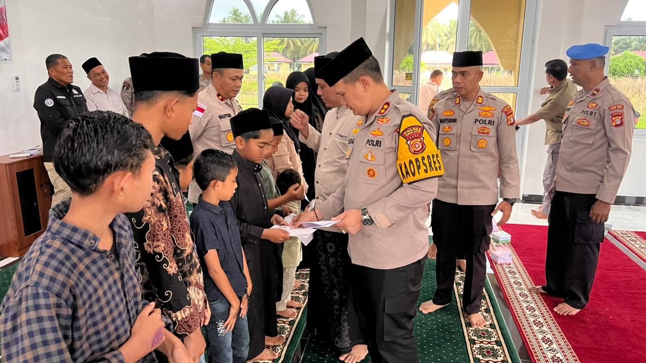 Sebagai bentuk kepedulian terhadap masyarakat pasca bencana alam, Kapolres Pidie Jaya AKBP Ahmad Faisal Pasaribu, S.H., S.I.K., M.H., menyantuni puluhan anak yatim dalam kegiatan Pembinaan Rohani dan Mental (Binrohtal) yang digelar di Masjid Al Fahri Polres Pidie Jaya, Kamis (8/1/2026).