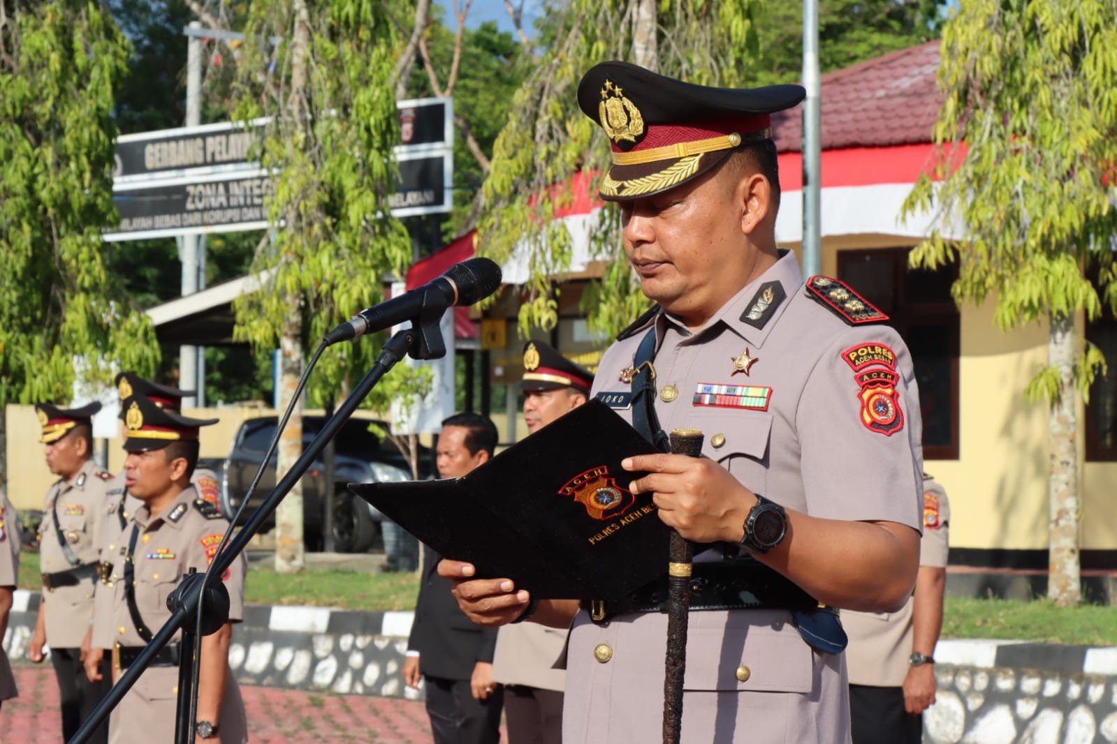 Upacara tersebut dipimpin langsung oleh Kapolres Aceh Besar AKBP Sujoko S.I.K.,M.H., selaku Inspektur Upacara dan yang menjadi Komandan Upacara Ipda Joko Supriyono serta diikuti oleh para pejabat utama Polres Aceh Besar, para Kapolsek, Personel Polres dan Personel Polsek jajaran Polres Aceh Besar.