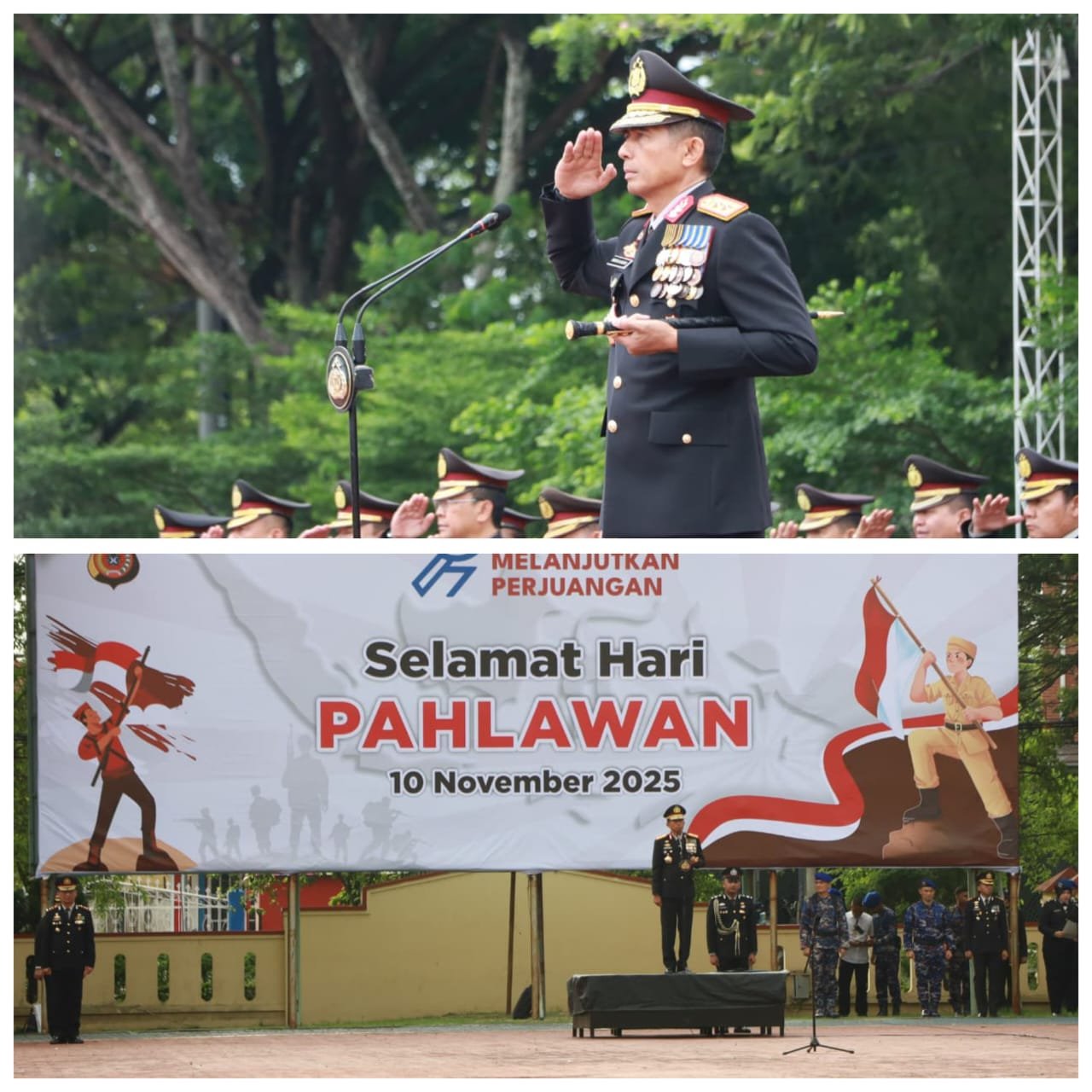 “Mereka bukan sekadar nama yang terukir di batu nisan, melainkan cahaya yang menerangi jalan kita hingga hari ini. Dari Surabaya hingga Banda Aceh, dari Ambarawa hingga Biak, mereka berjuang bukan demi dirinya sendiri, tetapi demi masa depan bangsa yang belum mereka kenal, yaitu kita semua yang berdiri di sini hari ini,” sebut Kapolda.