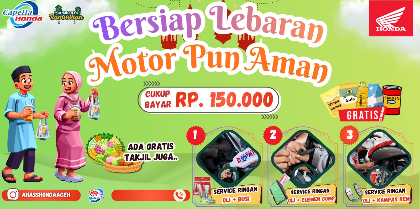 Menyambut bulan suci Ramadhan dan persiapan mudik Lebaran, jaringan AHASS Honda Aceh menghadirkan program promo spesial bertajuk “Bersiap Lebaran, Kendaraan Pun Aman.”