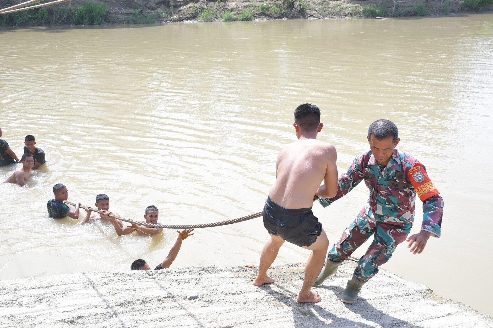 Melihat kondisi tersebut, personel TNI bergerak cepat mengambil langkah dengan membantu pembangunan jembatan perintis yang dapat difungsikan sebagai jalur penghubung sementara bagi masyarakat.