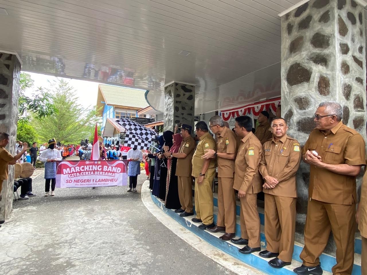 “Tadi kita saksikan pawai karnaval cukup meriah diiringan drum band dari SDN 1 Lambheu, SDN Lamreng, SMPN 1 Lhoong, SMPN 1 Leupung, SMAN Jantho, dan SMKN Jantho serta peniup surune kalee, penabuh rapai dan tampilan ketangkasan karate dan silat,” terangnya.